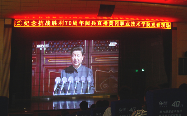 9月3日上午,学校组织了15000余名师生分别在教室、寝室、学术报告厅等活动地点集体观看了抗战胜利阅兵现场直播。