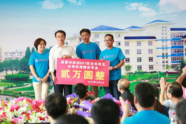 聚会期间,校友们向母校赠送纪念品,向母校捐资,向老师们敬献鲜花,为学弟学妹们助学。有校友向母校捐资,如原黄冈财贸学校887班校友向母校捐资2万元,支持母校发展。有校友资助学弟学妹,如原黄冈财贸学校9621班校友捐赠16800元资助商学院21名在校生,鼓励他们学业有成。校友们捐献的是一份份爱心,表达了校友们对母校的一片情谊,展现了校友们对母校美好明天的憧憬。