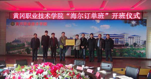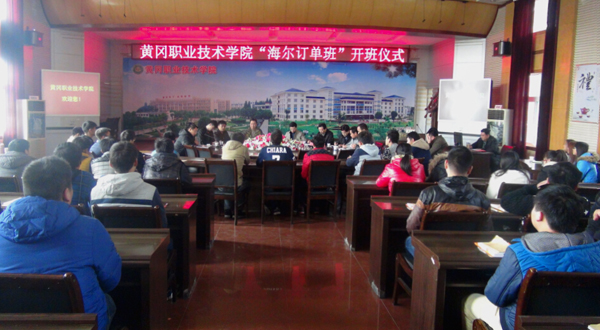 2015年11月27日,taptap点点“海尔订单班”开班仪式在学校中心会议室隆重举行。海尔空调生产制造部部长李桥飞、海尔电热生产制造部部长钟伟、海尔集团武汉分公司人力招聘经理冯德林,学校副校长熊发涯、就业指导处处长舒瑞琼、校企合作处副处长王银林、教务处副处长范先超,机电学院院长方玮、副院长黄国祥及120名订单班学生,参加了开班仪式。仪式由机电学院党总支书记王政芳主持。
