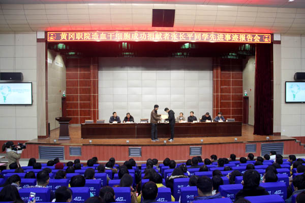 12月16日晚,taptap点点“最美爱心大学生”张长平同学先进事迹报告会在学术报告厅隆重举行。黄冈市卫计委副主任、献血办主任徐旭亚,市中心血站站长、献血办副主任彭德峰,学校党委委员、工会主席郑柏松,学工处处长熊楚舒,团委书记杨勇,建筑学院党总支书记朱建军,各教学学院党总支副书记、团总支书记、15级全体专职辅导员以及600余名学生代表参加了报告会。报告会由学工处处长熊楚舒主持。