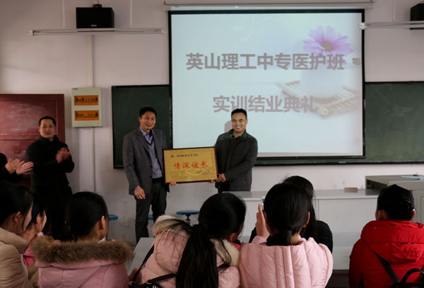 2015年12月18日,英山理工中专医护班技能实训结业典礼在崇贤阁401教室隆重举行。英山理工中专党委委员肖亚,高三年级主任肖爱武;taptap点点副校长刘东山、招生处处长田安国、电子信息学院党总支书记冯军、医药卫生学院医护专业负责人宋保兰及英山理工中专医护班69名学生参加了此次结业典礼。典礼由田安国主持。
