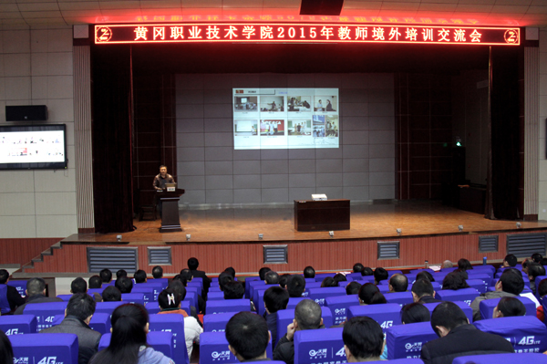 11月12日,学校在学术报告厅举行了2015年教师境外培训交流汇报会。校长姜安心、副校长熊发涯、工会主席郑柏松、党委委员夏学文、全校专兼职教师参加会议。会议由副校长熊发涯主持。