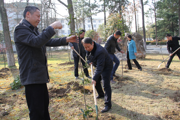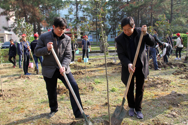 腾飞园内植丹桂 春季植绿八月香 来源:后勤服务与保障处 作者:边学飞 发布时间:2016-04-16 09:02:46 浏览次数: 次 【字体:小 大】 坚持生态和谐理念,优化育人环境。3月11日下午,党委书记张新佳、校长姜安心带领师生在学校南区腾飞园义务植树、建园添香。 植树现场干劲十足,气氛热烈,大家手持铁锹,挖土、扶树苗、培土、拎水,将150余颗充满生机和希望的桂花苗栽种在校园内。 此次活动后勤服务与保障处精心组织,其主旨是提高师生义务植树的意识,激发师生热爱校园、热爱劳动的情感,感受美化校园的意义,共享桂花香满校园的喜悦。 分享到: 【打印正文】