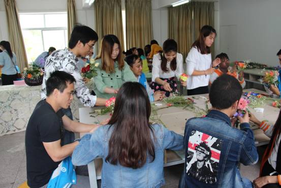 留学生们对这种动手的实践课程表现出了极高的兴趣。在插花课上,经过教师中英双语的讲解后,留学生们开始自己动手插花,期间与taptap点点学生互动,时不时还向指导老师请教。