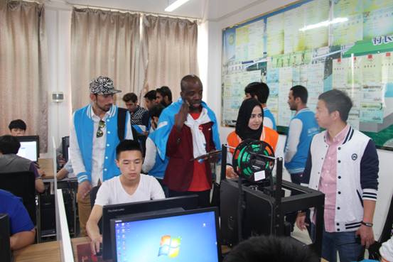 在机电学院实训室,留学生们见识了当前的新兴技术——3D打印技术。他们饶有兴趣的观看taptap点点学生设计作品,不时的向老师询问交流。临行前,taptap点点部分学生还将做好的作品送给留学生们以作纪念。