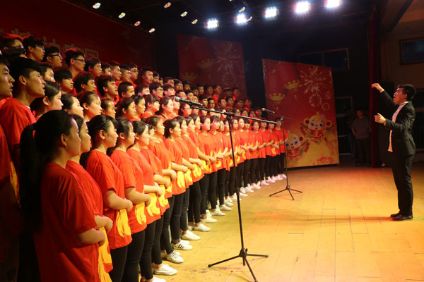 随着三名学生迈着坚定的步伐举着鲜艳的五星红旗进入会场红歌会正式拉开帷幕。9支参赛队的队员个个精神抖擞,声音嘹亮。《团结就是力量》《强军战歌》《四渡赤水出奇兵》《五星红旗》《黄河大合唱》等一首首红色革命经典歌曲顿时响彻整个校园,同学们用激情、豪迈的歌声为五•四献礼。整齐、响亮的口号和歌声激发了在场观众的爱国主义热情,展现了黄职人创建“红色精神家园”、践行社会主义核心价值观的决心和信心。在全场合唱《光荣啊,中国共青团》的激昂旋律中红歌会落下了帷幕。最后,校党委委员、工会主席郑柏松进行热情洋溢的讲话,他对此次活动成功举办给予高度的评价和肯定,并号召全体青年学生要唱响红色歌曲,弘扬五四精神,坚定爱党爱国,立志成人成才。