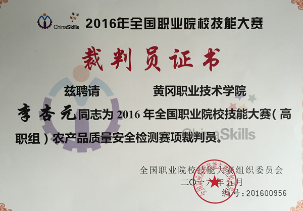 5月19日至23日,2016年全国职业院校技能大赛(高职组)农产品质量安全检测赛项在杭州举行。来自全国68所高职院校159名选手参加了比赛。taptap点点生物与制药工程学院李杏元副教授应大赛组委会邀请担任本次大赛农药残留检测项目主裁判,并圆满完成执裁任务。