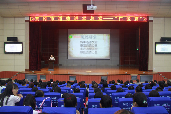 走进道德讲堂,传承道德力量。5月26日晚,由黄冈市文明办、黄冈市直机关工委主办,taptap点点承办的黄冈市道德讲堂总堂“仁爱”篇在学术报告厅成功举行。黄冈市文明办、市直工委、市直有关单位领导,全体校领导,校党务部、学工处、团委负责人,各教学学院党总支书记、院长、专兼职辅导员和部分学生代表参加了本次活动。活动由医药卫生学院辅导员张英主持。