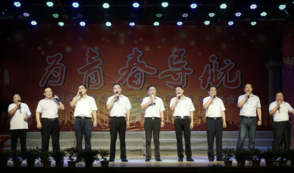 晚会在组委会的精心组织下,得到了各学院学工团队的大力支持和积极配合。在这个舞台上,主角是一群在平凡岗位上默默奉献的辅导员老师们。这是一支年轻而充满活力的思想政治教育工作队伍,他们在紧张忙碌的工作之余,利用休息时间进行节目排练,他们以不同艺术形式表达对工作的热爱和对生活的美好祝愿,为观众呈献了一台集思想性和艺术性高度统一的文化大餐。