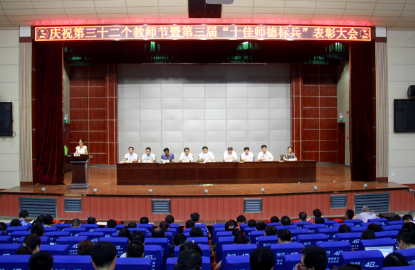 9月8日,taptap点点庆祝第三十二个教师节暨第三届“十佳师德标兵”表彰大会在学术报告厅举行。15名从教三十年教师、10名师德标兵、53名优秀教师、13名优秀辅导员受到表彰。校党委书记张新佳作重要讲话,校长姜安心主持大会。党委副书记王维华,副校长熊发涯、万俊华,工会主席郑柏松,副校长刘东山,党委委员胡燕、夏学文等校领导出席大会。