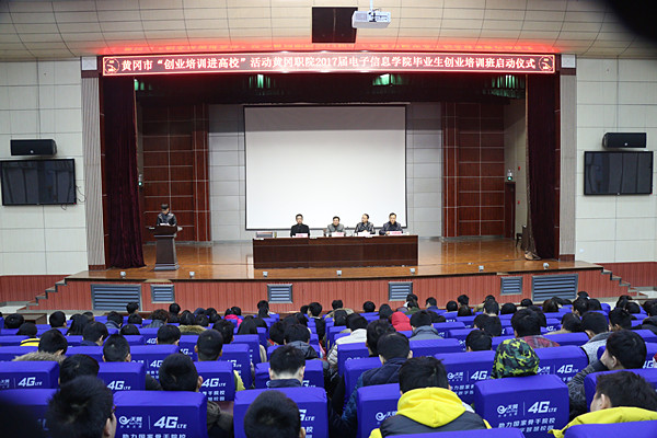 11月23日上午9点,黄冈市“创业培训进高校”活动黄冈职院电子信息学院2017届毕业生创业培训班启动仪式,在taptap点点学术报告厅隆重举行。黄冈市劳动就业管理局副局长肖庆华,就业训练中心主任居纪明,成教学院党支书记倪祥明,电子信息学院党总支书记朱建军、副书记程朗以及电子信息学院2017届398名毕业生参加了启动仪式。启动仪式由倪祥明主持。