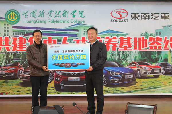 最后,陈逸昌代表东南汽车公司与学校签订了共建东南汽车华中人才培养基地的校企合作协议,并向学校捐赠了5辆东南品牌整车作为教学设备。