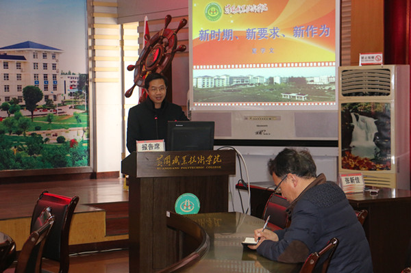 胡亚学则以“改革中的变与不变”为题分析了教育教学改革中需要转变和可以保留的东西,分别从学校、专业、教师、管理等方面的改革做了阐述。对于公共课部承担的几门公共课程(英语、应用文写作、数学、体育),他提出了一些初步改革建议。胡亚学还就师德规范及学校的相关规定给老师们做了解释。
