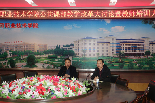 2月23日下午,公共课部全体教师在凝智楼中心会议室召开了教育教学改革大讨论暨教师培训大会,这是继上学期学习相关文件之后公共课部全体教师再一次集中学习。校党委委员夏学文,教务处处长胡亚学就新一轮教育教学改革分别作了报告,会议由公共课部主任黄爱良主持。