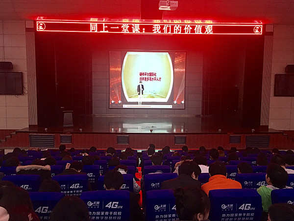 为深入贯彻落实全省高校思想政治工作座谈会精神,3月7日晚,学工处、团委组织650余名学生在学术报告厅集中观看了由湖北省委宣传部、省教育厅、团省委、湖北广播电视台联合举办的《同上一堂课:我们的价值观》电视课堂录播。