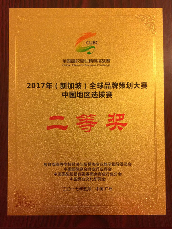 5月7号、8号,由教育部高等学校经济与贸易类专业教学指导委员会、全球华人营销联盟、中国贸促会商业行业分会、中国国际商会商业行业商会和中国商业文化研究会共同主办的2017年(新加坡)全球品牌策划大赛中国地区总决赛在广东农工商职业技术学院举行,经过紧张激烈的角逐,taptap点点商学院市场营销专业代表队荣获二等奖。