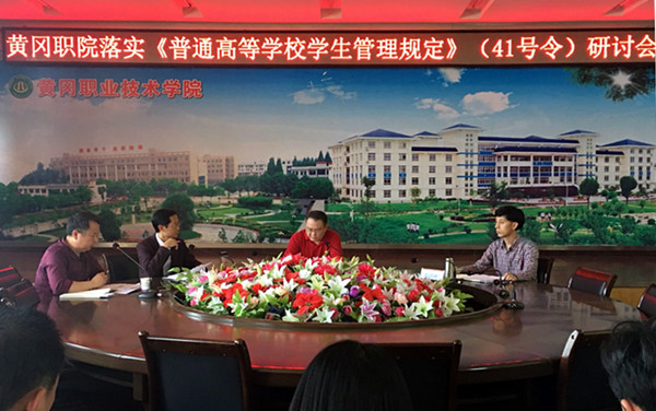 胡亚学对《普通高等学校学生管理规定》(教育部41号令)中要求学校细化的26个问题向会议作了通报,并带领大家一起研讨,逐一落实问题具体落实的细节。
