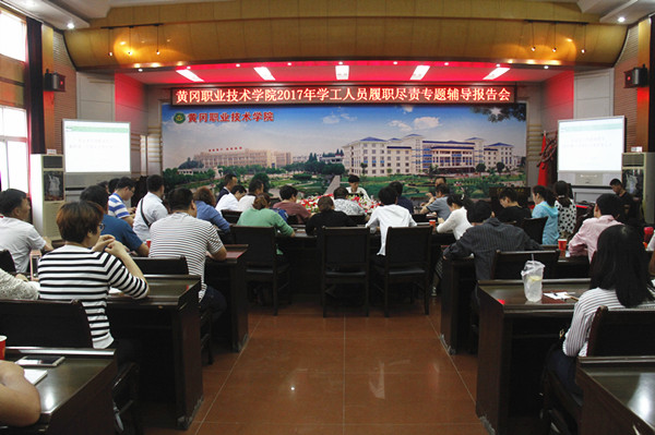 为了落实巡视整改工作要求,学工处、团委积极查摆自身存在的问题,进一步完善履职尽责工作清单。5月15日晚,在学校中心会议室召开了2017年学工人员履职尽责辅导报告会。校党委委员、工会主席、宣传部长郑柏松,各教学学院党总支副书记、团总支书记,心理健康中心专职教师和全体专兼职辅导员参加了此次会议。会议由熊楚舒主持。