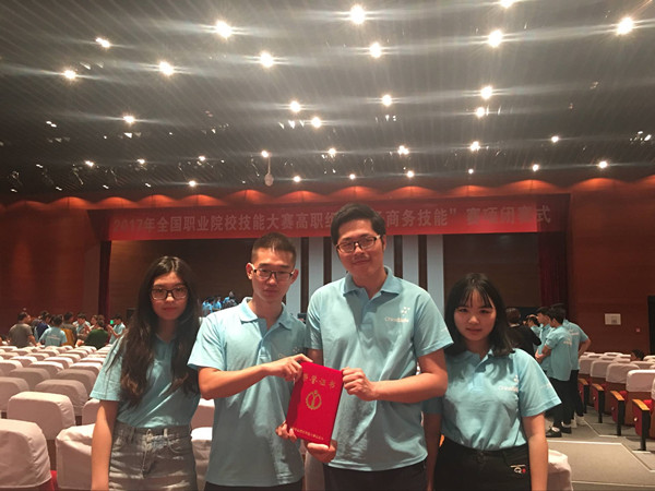 5月12日,2017年全国职业院校技能大赛高职组“电子商务技能”赛项在天津商务职业学院举行,taptap点点商学院电子商务专业学生胡延庆、杨帆、王潇、王芳静组成的代表队在此次大赛中喜获团体三等奖。本次大赛由国家教育部主办,全国29个省、市、自治区共84所高职院校336名选手参加。竞赛分为网店装修、运营推广、客户服务三项竞赛内容,竞赛时间为8个小时。比赛成绩的取得得益于参赛选手的艰苦训练和指导老师的辛勤付出,得益于领导的高度重视,是电商专业教学改革的成果体现。
