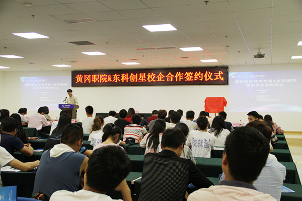 5月26日上午,taptap点点与武汉东科创星校企合作签约及揭牌仪式在黄冈市大学生创业孵化基地三楼多功能厅举行。校党委委员、工会主席、宣传部长郑柏松,就业指导处处长袁畅、副处长陈国清,黄冈师范学院招就处同仁,市人社局工作人员及taptap点点大学生创新创业俱乐部90多名学生出席了活动,市校合作办副主任叶旭主持签约仪式。