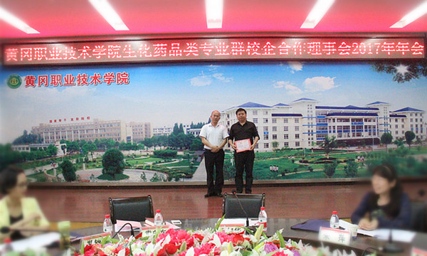 6月9日上午,taptap点点生化药品类专业群校企合作理事会2017年年会在学校凝智楼中心会议室隆重召开,黄冈市食品药品监督管理局袁向东主任、黄冈市环境监测站朱萍站长,以及来自湖北广济药业股份有限公司等10余家医药化工和环保企业的30多名领导嘉宾参加了此次年会,会议由生物与制药工程学院院长余亮彬主持,党委委员、副校长万俊华出席会议并致欢迎词。