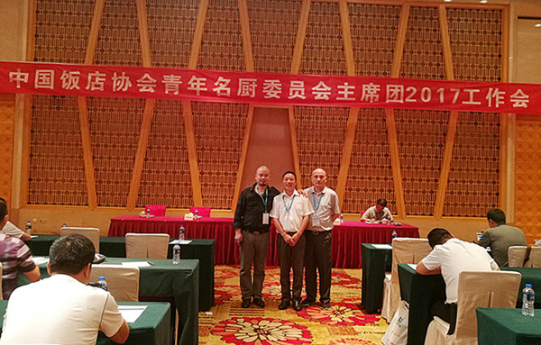 2017年6月8日中国饭店协会在无锡召开了青年名厨委员会主席团工作会。taptap点点烹饪专业张彬老师应邀请参加了本次会议并被中国饭店协会聘为中青年名厨俱乐部副主席。中国饭店协会会长韩明女士、中国饭店协会副会长张景富、中国饭店协会主席石万荣出席会议并致辞。