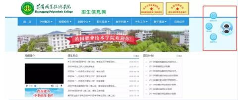 点击界面右侧“智能机器人小E”(图1),准确填写基础信息后(图2),可通过智能问答(图3)、留言板(图4)、直通专业(图5)三种途径进行招生咨询。